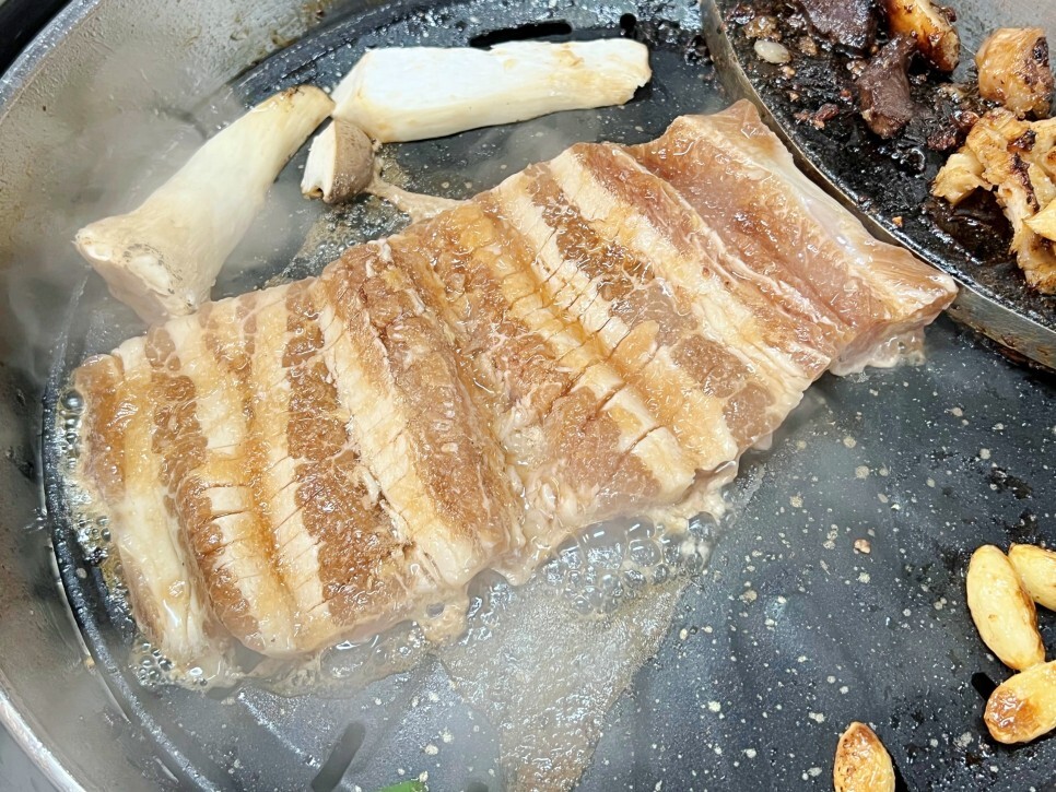 흐름이 끊기면 안 되니까 중간중간 불판을 정리해 주면서 열심히 구워봅니다. 글을 쓰면서도 군침이 막 돕니다.