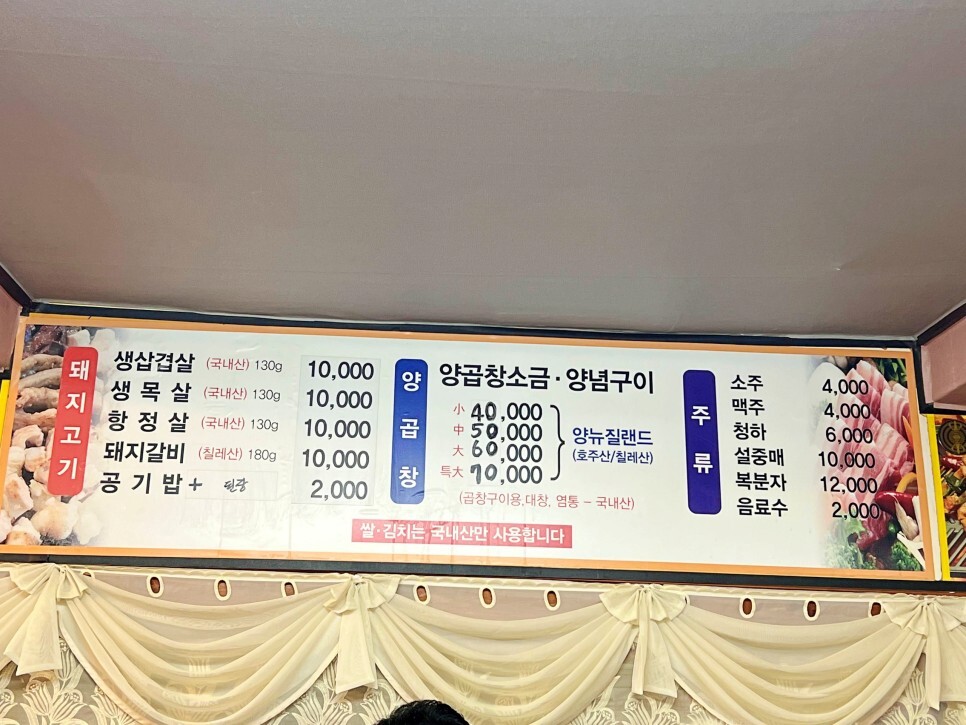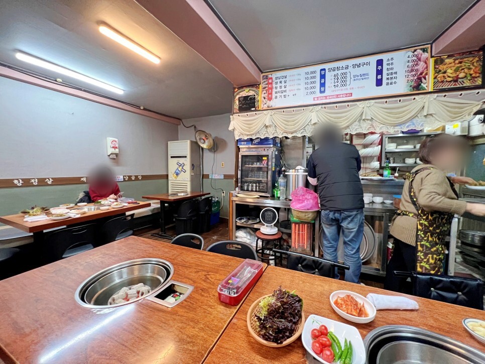 대부분 삼겹살, 목살, 돼지갈비 등 돼지고기를 즐기는 경우가 많은데요. 사실 이 집은 양곱창이 맛있기로 유명한 곳이기도 합니다. 저희는 양곱창 소금구이로 주문을 해봅니다. 공깃밥에 된장찌개도 2천 원으로 저렴해요.