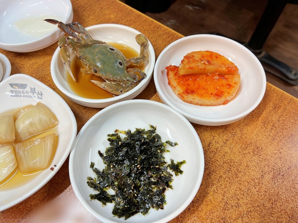 그냥 가기 아쉬워서 된장찌개를 주문해 봅니다. 간장게장 게 한 마리 통째로 나오고요. 잘 익은 무김치, 김가루도 나옵니다. 물론 공깃밥도 포함이고요.