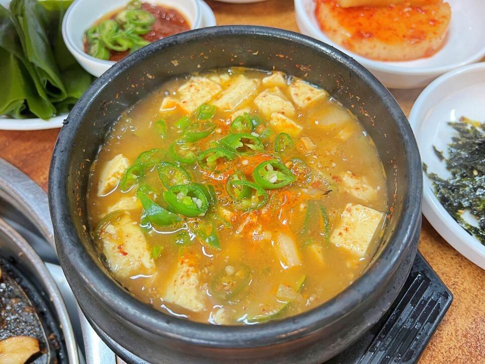 저와 일행은 땡초 마니아라서 늘 하던 것처럼 땡초 하나 집어서 썰어 넣습니다. 찌개는 매콤하게 먹으면 참 좋더군요. 매콤함이 스트레스 해소에 좋다던가요? 그래서 자꾸 매콤한 게 땡기는 것일 수도 있겠네요.