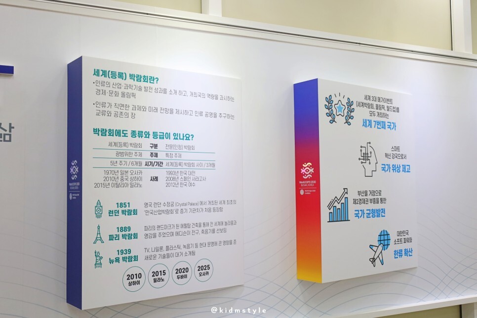 부산 시내를 걷다 보면 2030라는 단어를 자주 만날 수 있어요. 2030년 세계박람회가 개최되는데 부산에 유치하기 위해 부산시는 물론 국가 차원에서도 많은 노력을 하고 있는데요. 엑스포 유치를 위해 다양한 홍보 활동을 열심히 하고 있답니다.