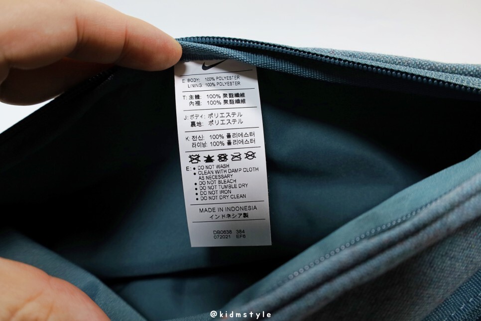 이 제품은 재활용된 섬유로 만든 제품입니다. 폐기물과 탄소 배출량을 줄였고요. 탄소 제로와 제로 웨이스트를 향한 나이키의 의지가 보이는 부분이네요.