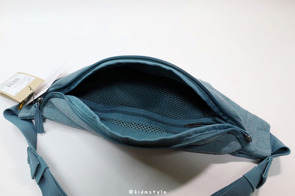 지퍼를 열면 내부 공간이 있고 안쪽에 메시 형태의 귀중품 수납부가 하나 더 있습니다. 지갑, 에어팟 프로, 500ml 생수 한 병 정도 넣고 다니기 딱 좋습니다.