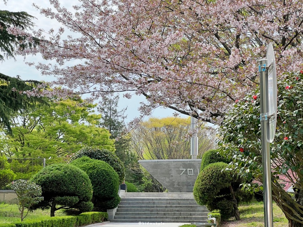 701 전승비가 있는데요. 저 안쪽이 겹벚꽃 스팟이에요. 아직 거의 피지 않아서 사진만 남기고 이동합니다.