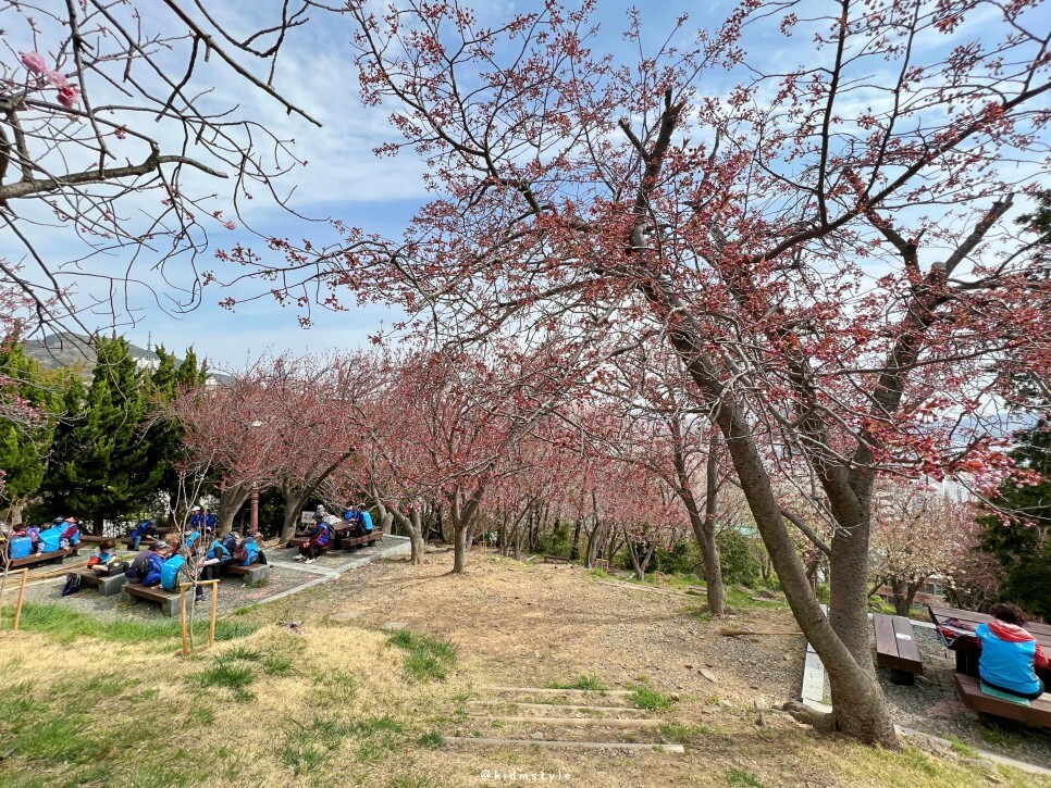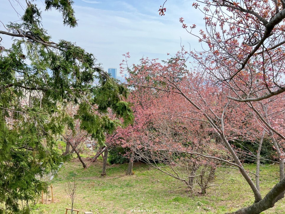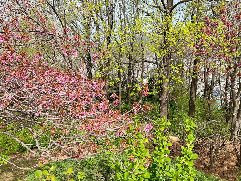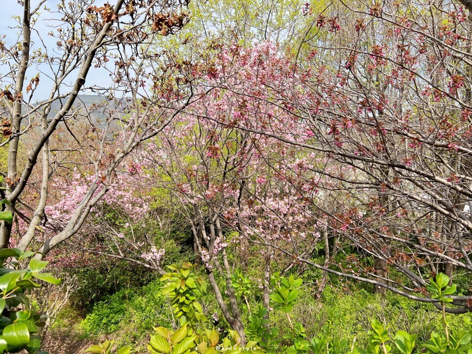 보이는 공간이 겹벚꽃 동산입니다. 그리 넓지는 않아요. 그래서 만개했을 때 주말에는 발 디딜 틈이 없습니다.