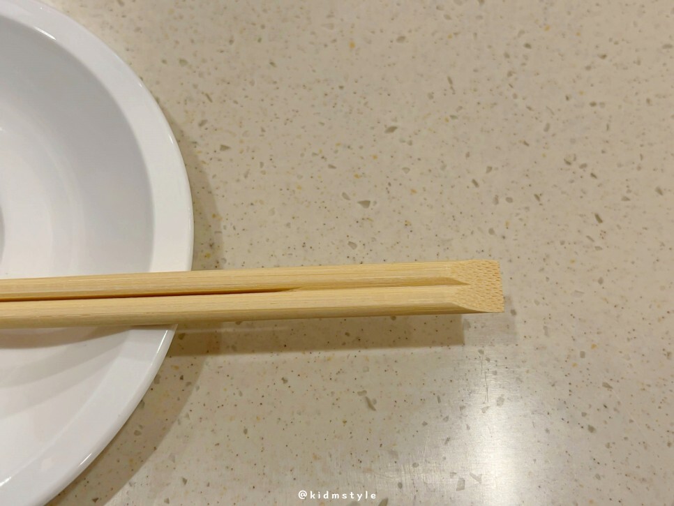 젓가락 끝이 사선으로 마감되어 있네요. 라멘집에서 자주 볼 수 있는 젓가락이에요.