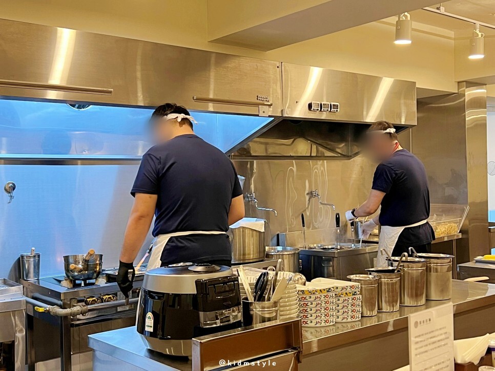 오픈형 주방이라 조리 과정을 직접 볼 수 있어요. 깔끔하게 잘 관리된 주방이라 마음에 듭니다. 음식의 맛도 중요하지만 위생과 친절 역시 정말 중요하다고 생각합니다. 이 집은 일단 위생과 친절이 만족스럽습니다.