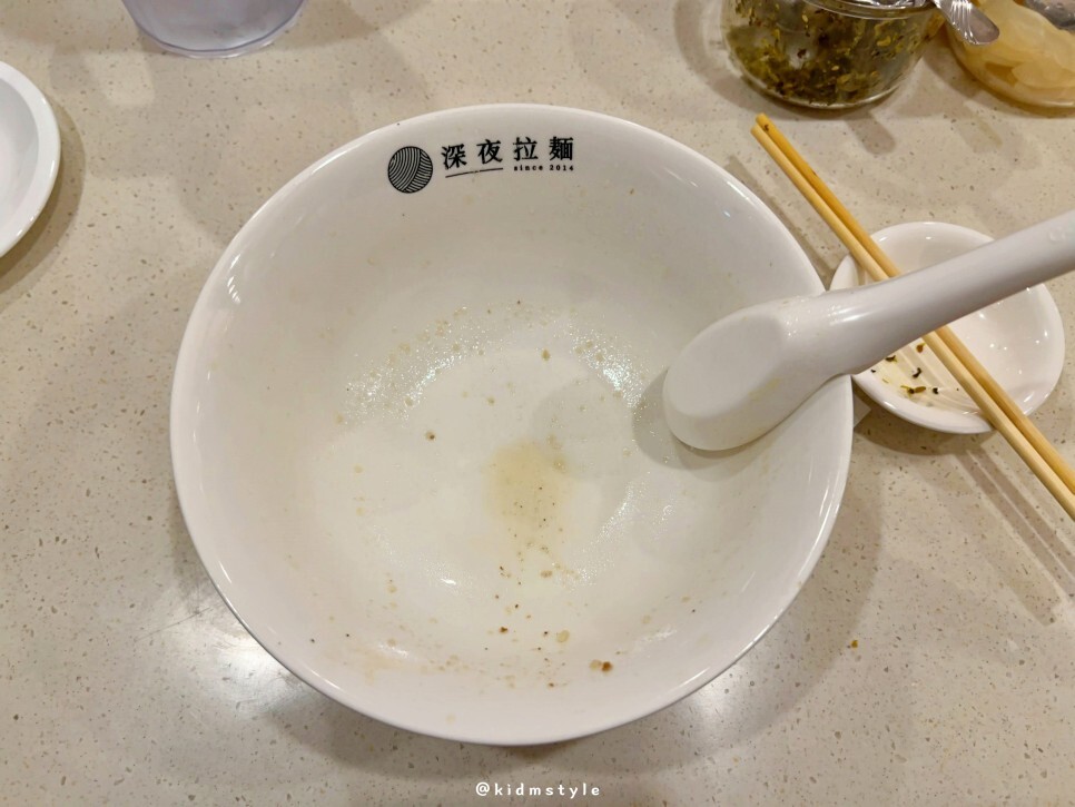 예상대로 깔끔하게 비웠습니다. 염도를 조금 낮추고 돈코츠라멘의 느끼함을 잘 잡은 라멘 같습니다. 그래서 라멘을 처음 맛보는 사람도 호불호가 갈리지 않고 맛있게 맛볼 수 있을 것 같네요.