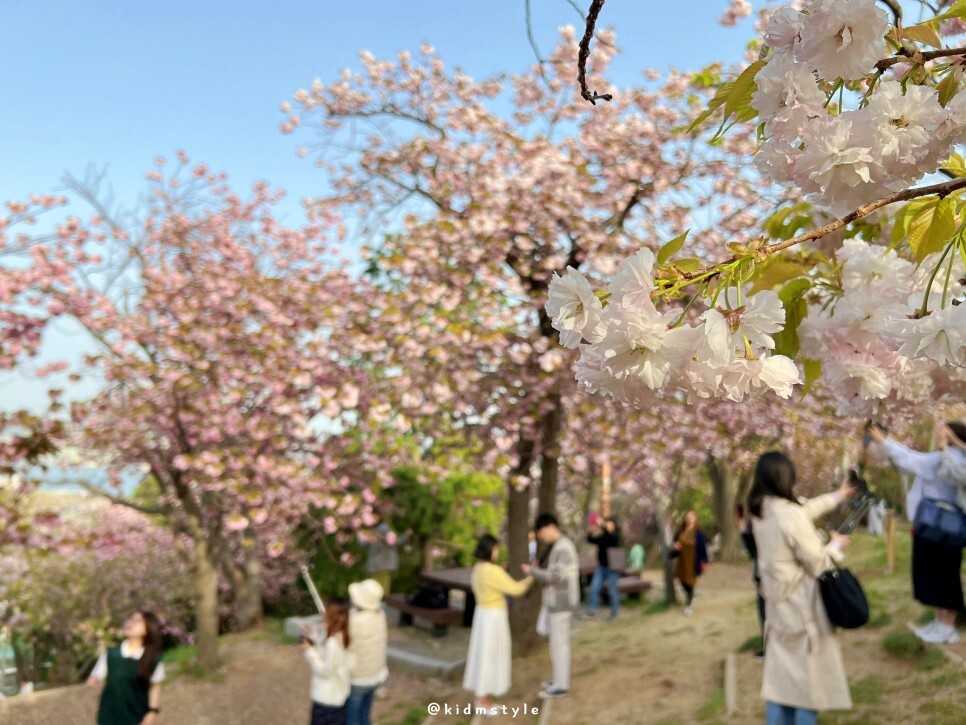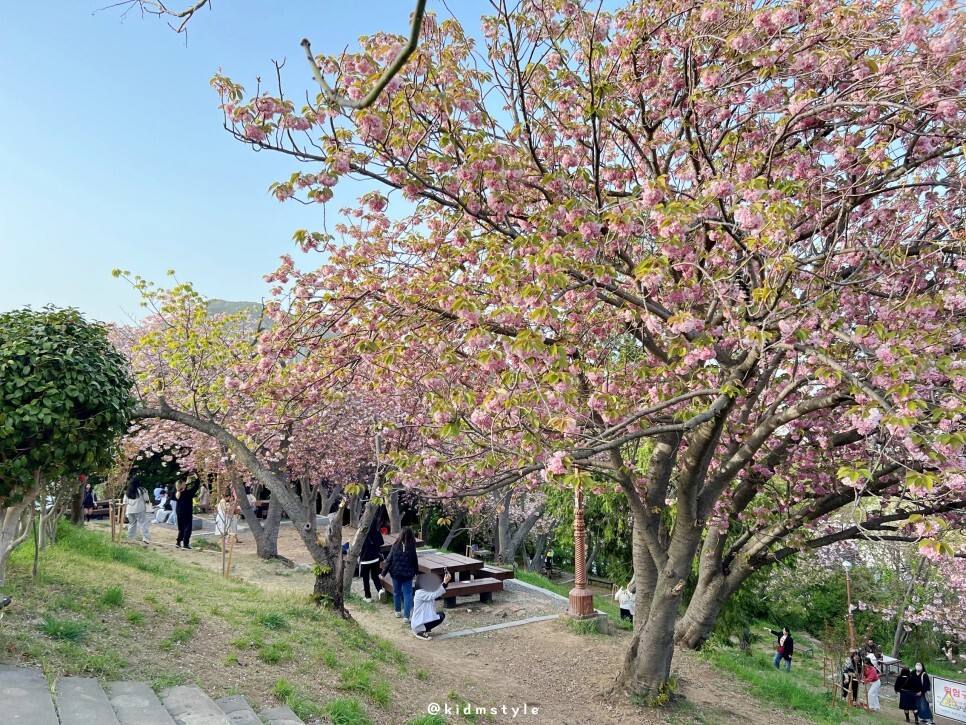 겹벚꽃 동산에 도착했어요. 평일 오후 5시인데 사람이 이렇게 많네요. 지난주 토요일, 일요일 둘 다 왔었는데 진짜 인산인해였습니다.