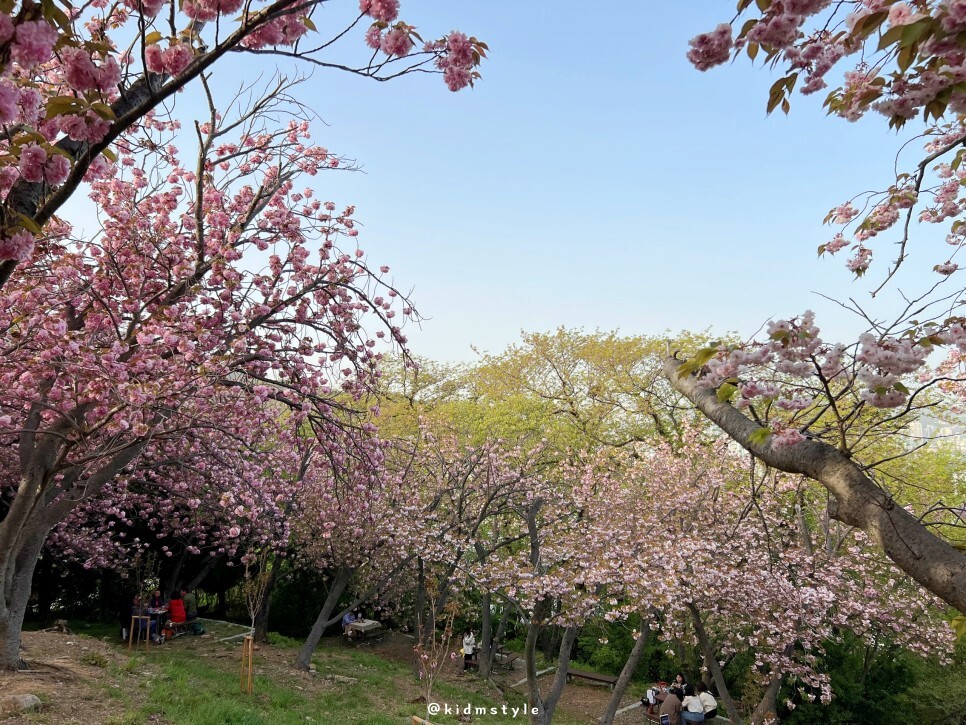 부산 민주공원 겹벚꽃 개화상황 (2023년 4월 8일 현재)