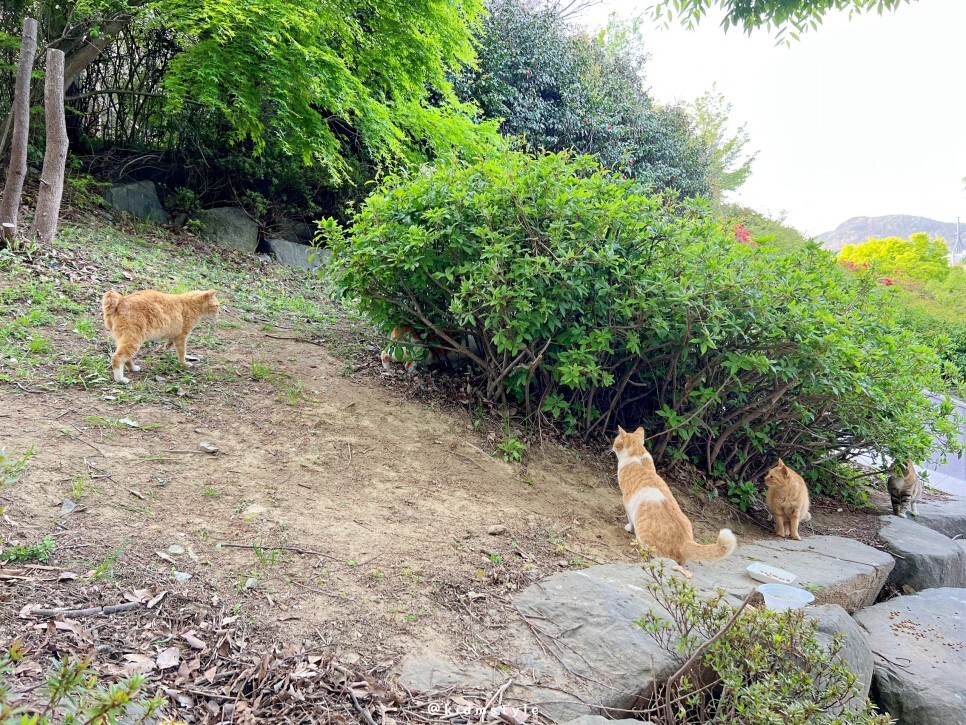제가 다가가니 순식간에 고양이 5마리가 모이네요. 동물들은 저를 좋아하더군요. 그들 눈에는 나쁜 사람은 아닌가 봅니다.