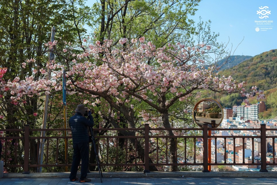 돗자리도 펴고 서로 사진도 찍어주고 각자의 방법으로 봄을 즐기는 모습이 참 보기 좋네요. 예전에는 동네 사람, 아는 사람만 알음알음 찾아오던 곳인데 이제는 sns의 영향으로 부산에서 가장 유명한 겹벚꽃 장소가 되었습니다.