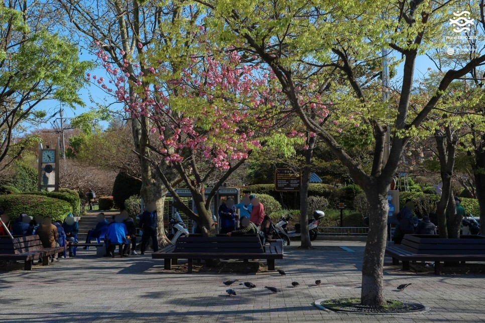 공원 광장에도 겹벚꽃 한 그루가 예쁘게 피어있네요. 이곳은 장기를 즐기는 어르신들로 늘 붐비는 곳이기도 해요. 여느 때와 다를 것 없는 평화로운 풍경이 참 의미 있게 다가오기도 합니다.