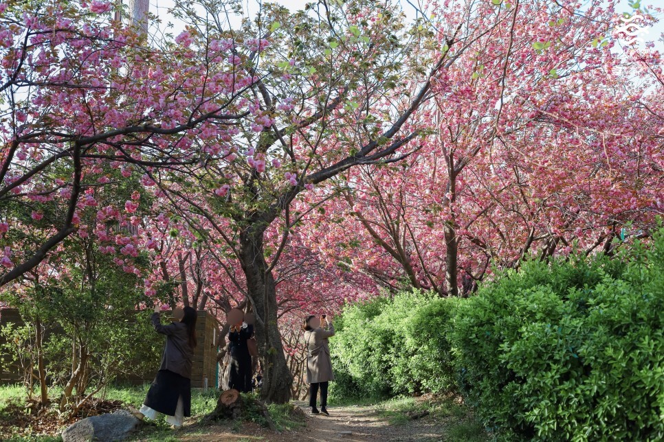 이 풍경 많이 보셨을 거예요. 올해는 유독 더 예뻐 보입니다. 짙은 분홍, 옅은 분홍 등 다양한 색감의 겹벚꽃이 주는 매력은 참 아름답습니다.