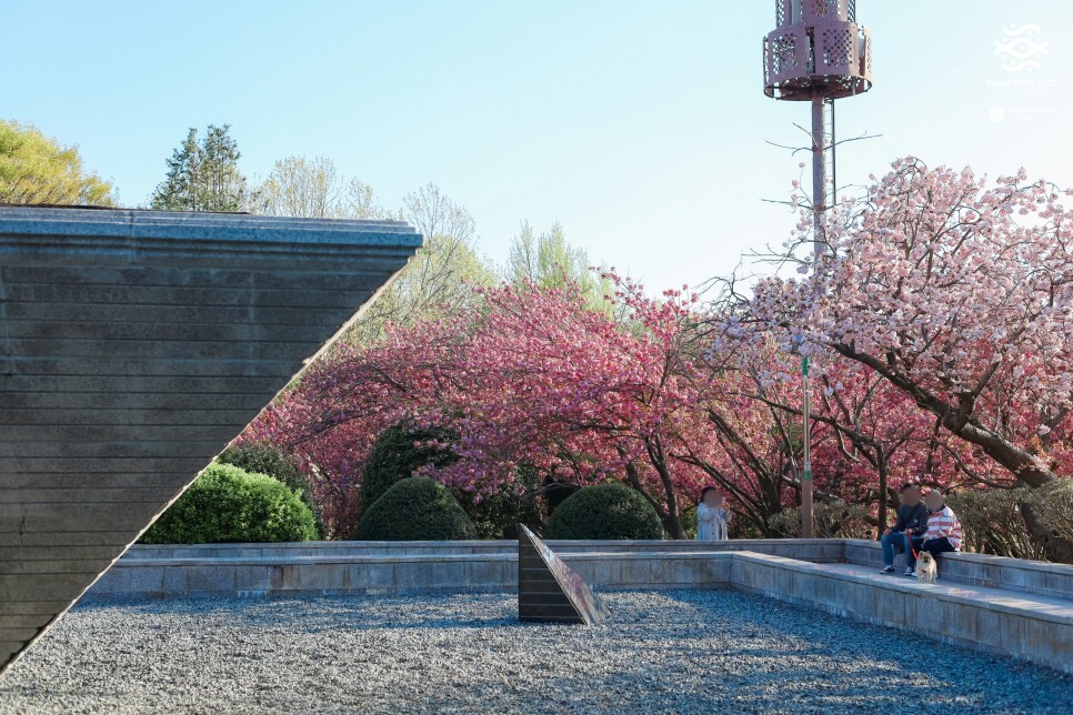 전승비 뒤쪽으로 커다란 겹벚꽃 나무들이 한가득입니다. 아래쪽의 겹벚꽃 동산에 비해 사람들이 적죠? 여기도 꼭 구경해 보시는 것을 추천드려요.
