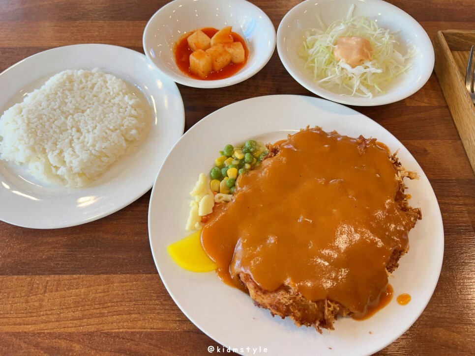 스프를 다 먹을 때쯤 돈까스가 나왔습니다. 가성비 참 좋아 보이죠.