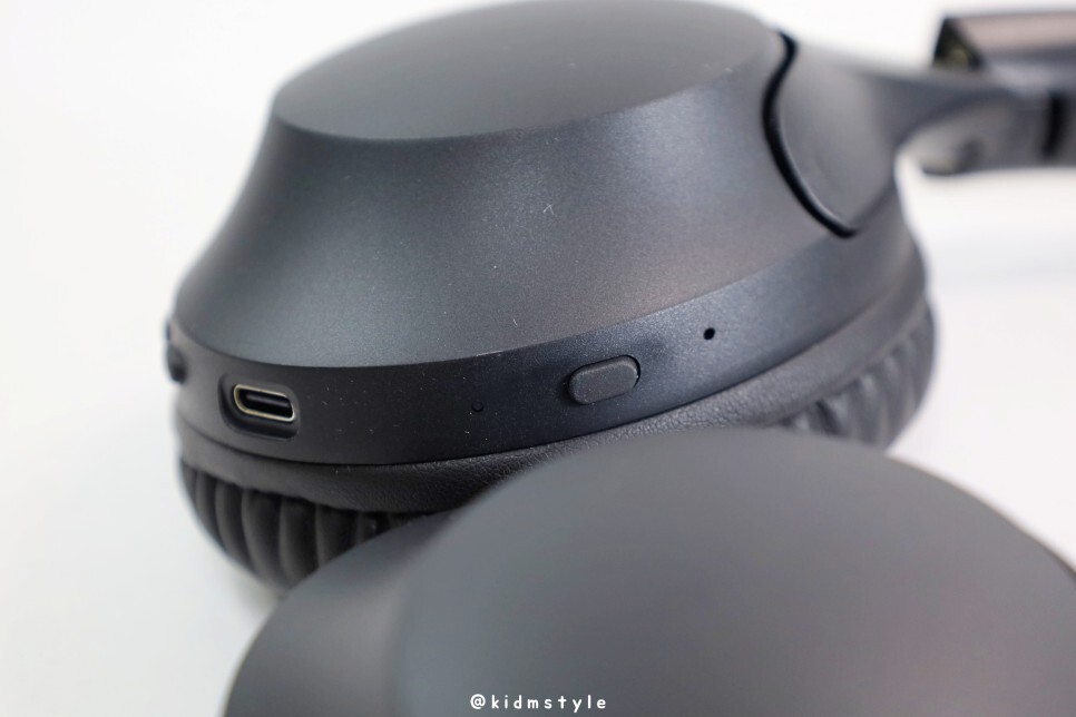 옆면에는 QCY 로고가 찍혀있습니다. 이 제품이 인기를 끈 이유가 디자인 때문인데요. 소니 WH-1000XM4와 상당히 닮았습니다. 물론 최신 제품인 1000XM5와는 조금 다르긴 합니다.