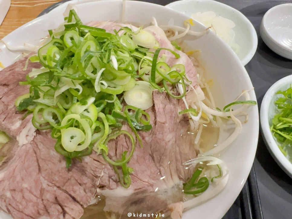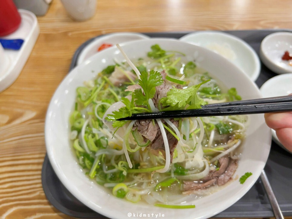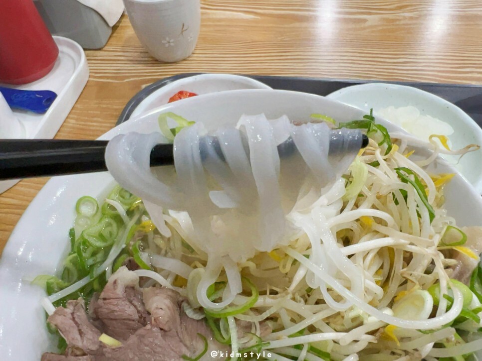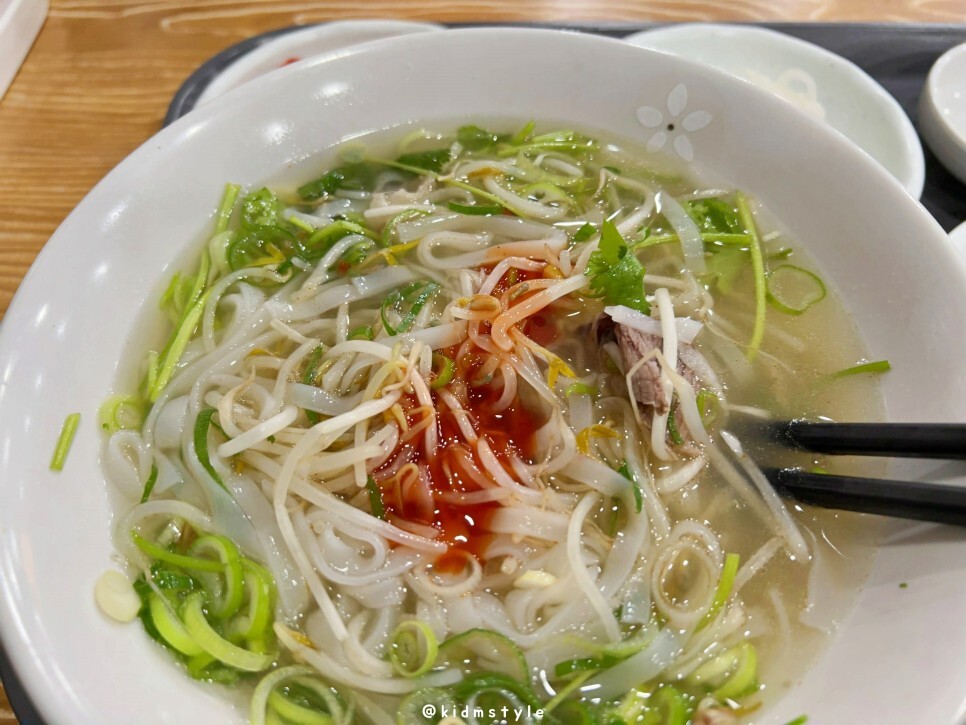 묵직한 맛이 없어서 아쉽지만 깔끔, 담백, 시원해서 가성비가 참 좋습니다. 특히 이 맛을 좋아하는 분들도 많고요. 개인적인 생각인데 숙주 양은 좀 줄였으면 좋겠습니다. 면과의 비율이 안 맞아요. 쌀국수가 아닌 숙주국수를 먹는 느낌이랄까요?