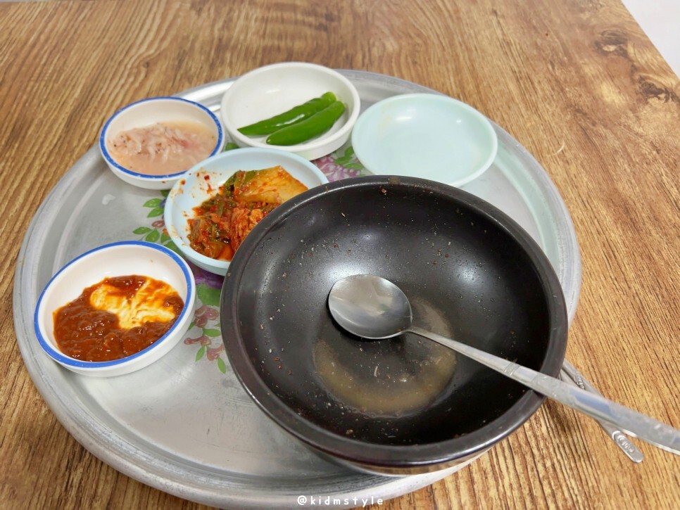 깔끔하게 비웠습니다. 양도 많아서 김치는 좀 남겼습니다. 싸오고 싶었네요.