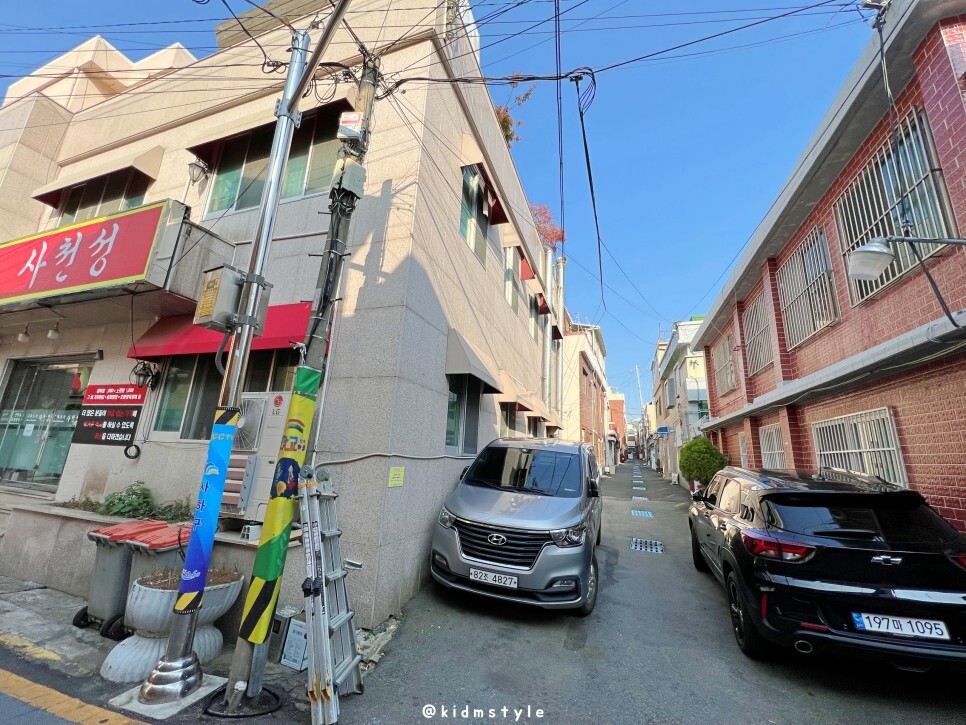 사천성 중국집 옆 골목으로 쭉 올라갑니다. 위치가 조금 애매한데 스마트폰의 지도앱을 참고하시면 쉽게 찾을 수 있습니다.