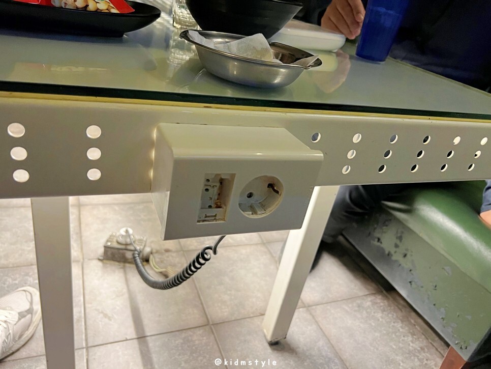 테이블 옆에 콘센트가 있어서 폰 충전하기 좋네요.