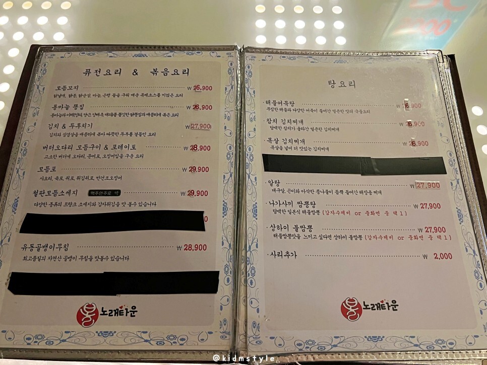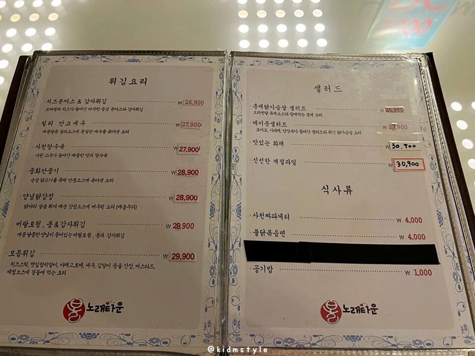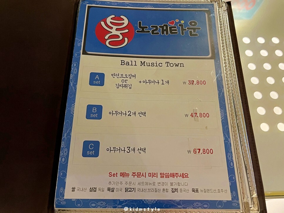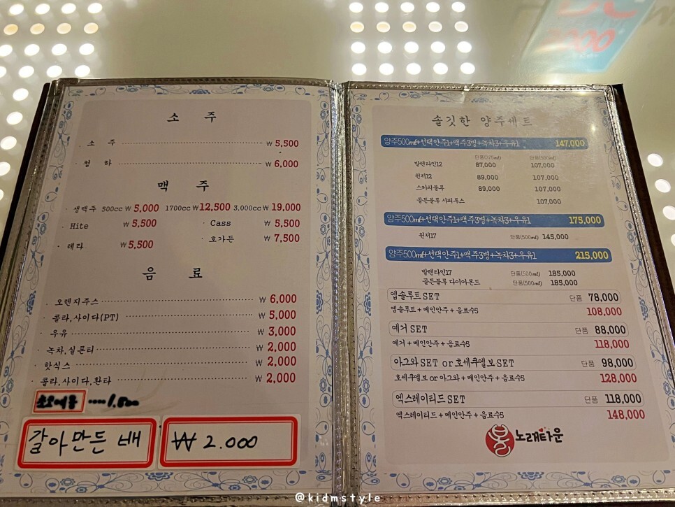 메뉴를 살펴봅니다. 노래주점은 다들 그렇듯 안주 가격이 좀 비쌉니다.