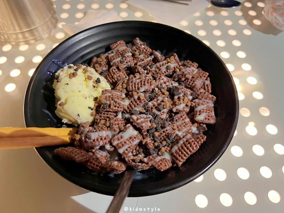 기본 안주입니다. 시원한 아이스크림에 시리얼 한 숟가락 맛봅니다.