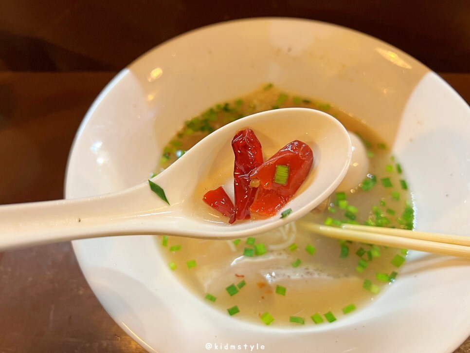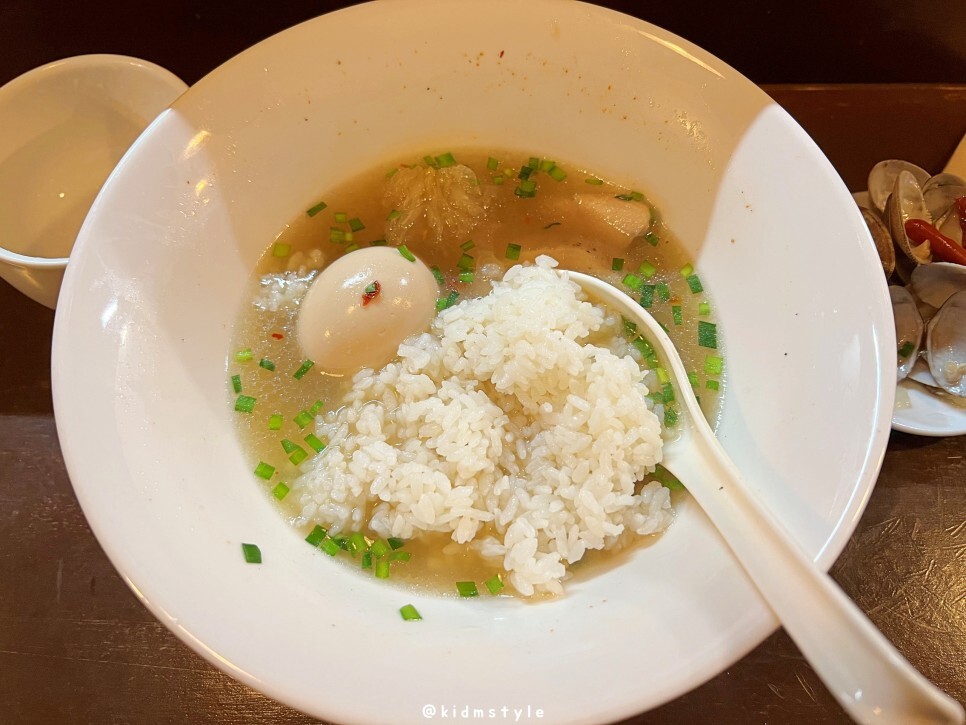 국물이 꽤 괜찮습니다. 조개 육수와 닭 육수의 조화가 참 좋습니다. 시원하면서도 깊은 국물입니다.