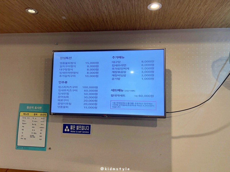 직원분들은 친절합니다. 점심특선도 인기가 많은 것 같고요. 추가 메뉴도 주문 가능합니다. 1층에서 활게를 주문하였기에 1인 4,000원의 상차림비가 발생합니다.