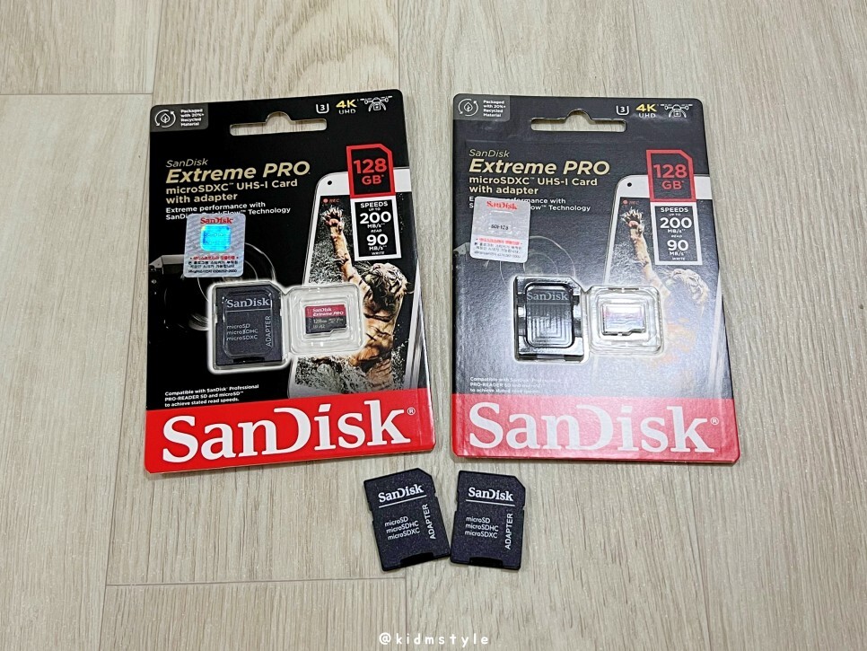 마이크로 sd카드도 준비했습니다. 128기가로 2개 샀어요. 어댑터도 따로 주문했는데 제품에 포함되어 있네요.