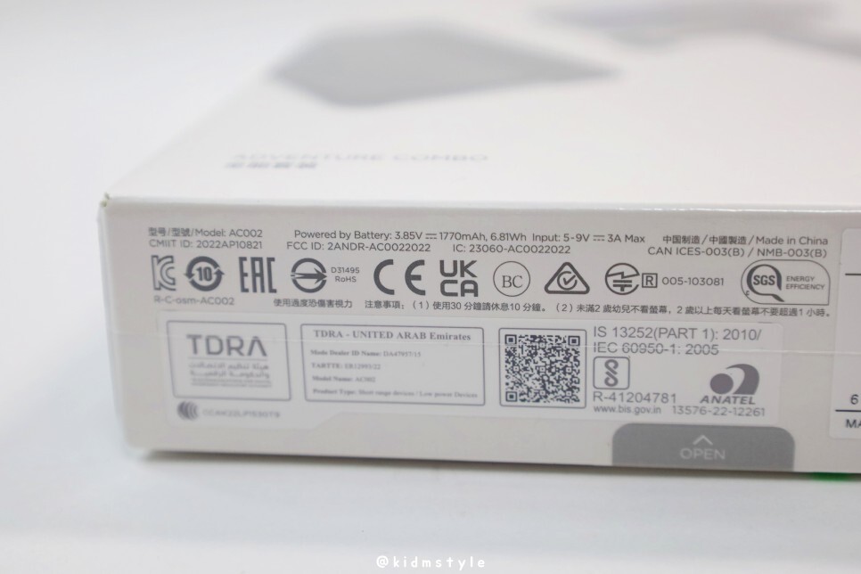 여러 가지 인증이 적혀있습니다. 우리나라 KC 인증도 있네요.
