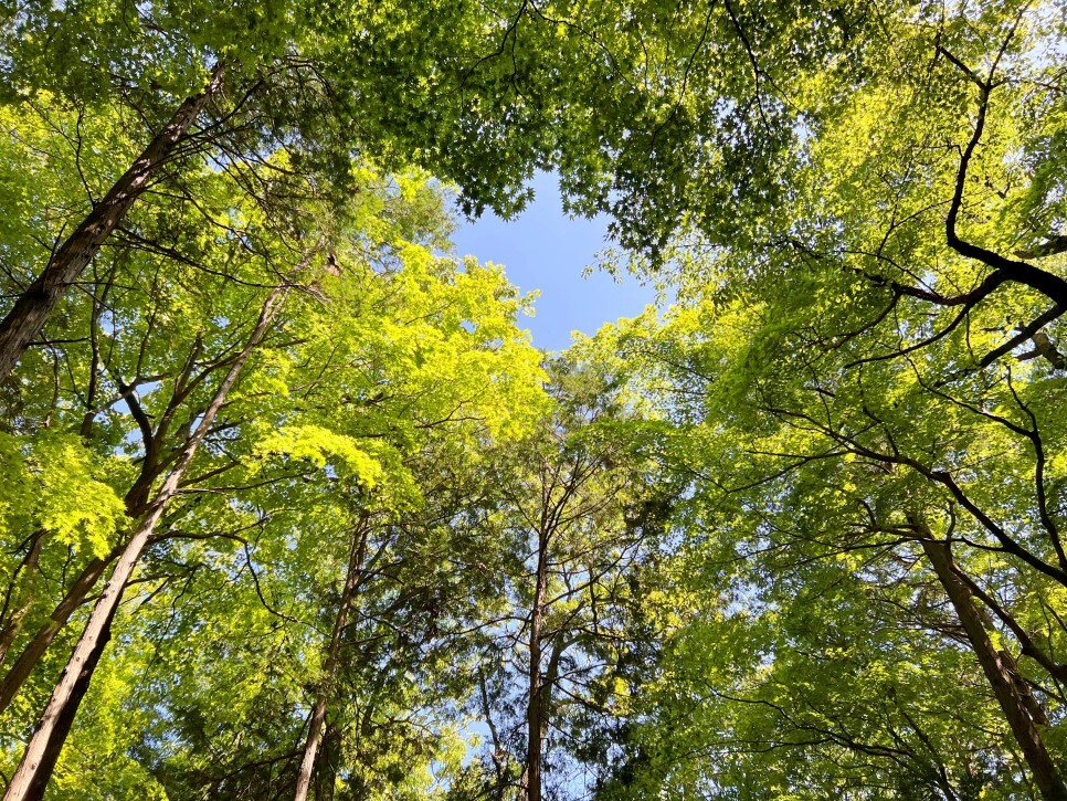 울창한 나뭇잎들이 하늘을 가리고 있네요. 푸른 하늘과 색깔이 참 잘 어울립니다. 도심 속에서 이런 여유를 즐길 수 있다는 것은 큰 행운입니다.