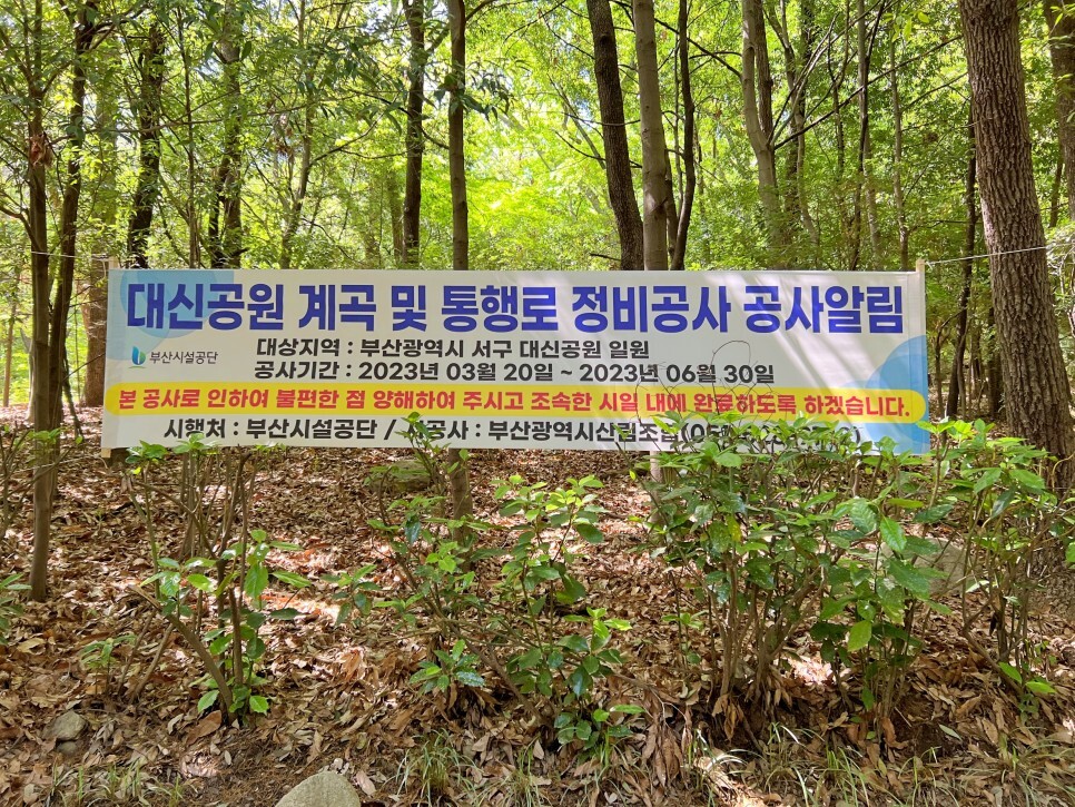 6월 말까지 대신공원 계곡 및 통행로 정비 공사가 진행되고 있으니 참고하시기 바랄게요. 좀 더 나은 모습으로 바뀔 예정이니 많은 협조가 있으면 좋겠죠.