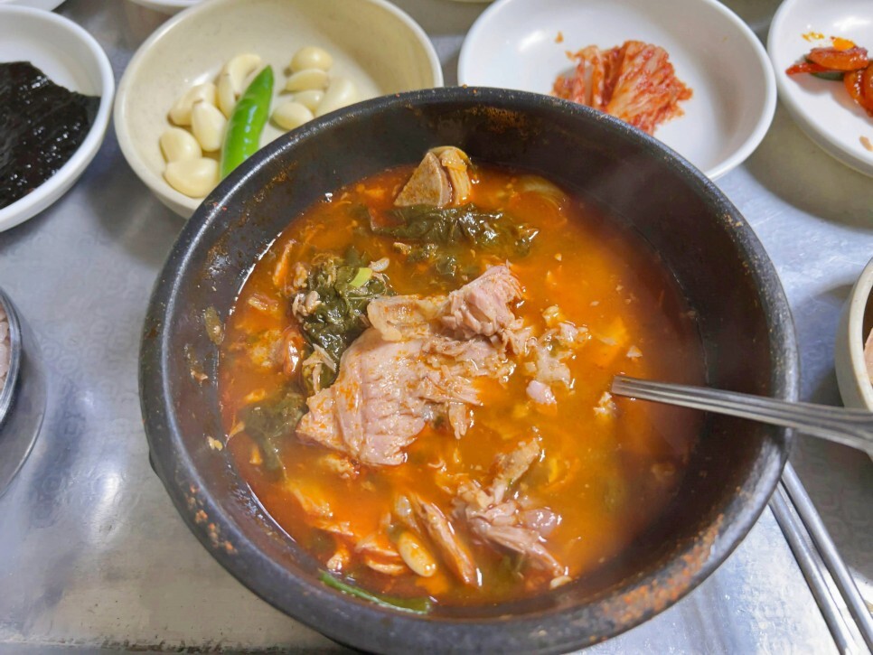 우거지도 상당히 부드럽고 연합니다. 적당한 간의 국물, 부드러운 고기와 우거지 이 세 가지 요소는 맛있는 뼈다귀해장국을 완성하기에 충분합니다.