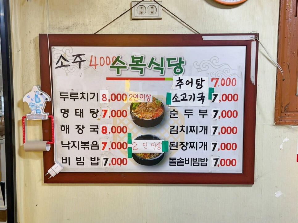 내부는 이렇습니다. 오래된 식당임이 느껴지시죠? 이 근처에는 물류센터, 택배회사 등 다양한 기업이 많은데요. 오늘 소개하는 수복식당 뿐만 아니라 근처에 정식집 등 맛집이 꽤 많답니다.