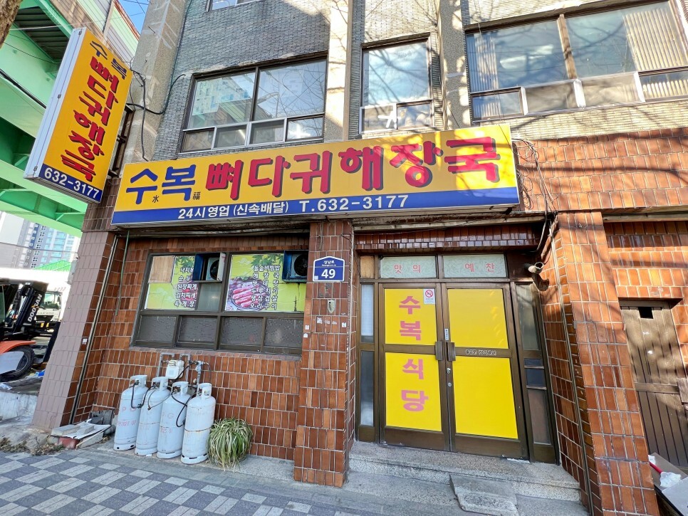 좌천동 철길 육교에 내려오자마자 보이는 식당인데요. 오늘 소개할 곳은 수복뼈다귀해장국이라는 곳입니다.