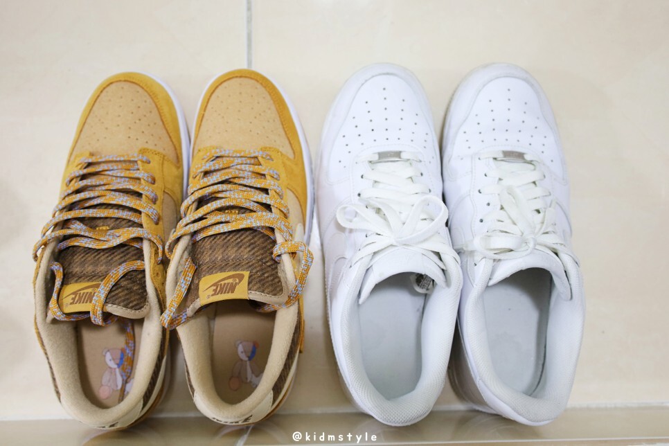 표면의 재질은 기존 덩크 로우와 좀 다릅니다. 토캡 등에는 코듀로이 느낌의 소가죽이며 발등은 부직포 같은 재질인데 생각 외로 튼튼해 보입니다.