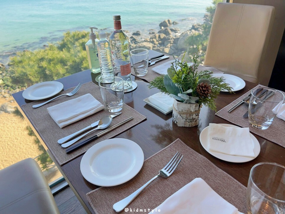 미리 창가 테이블로 예약을 했습니다. 세팅이 다 되어 있네요.