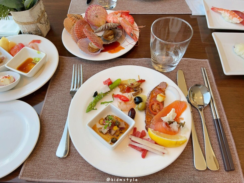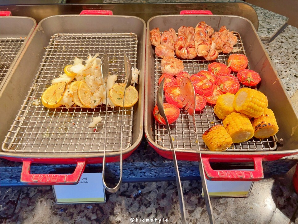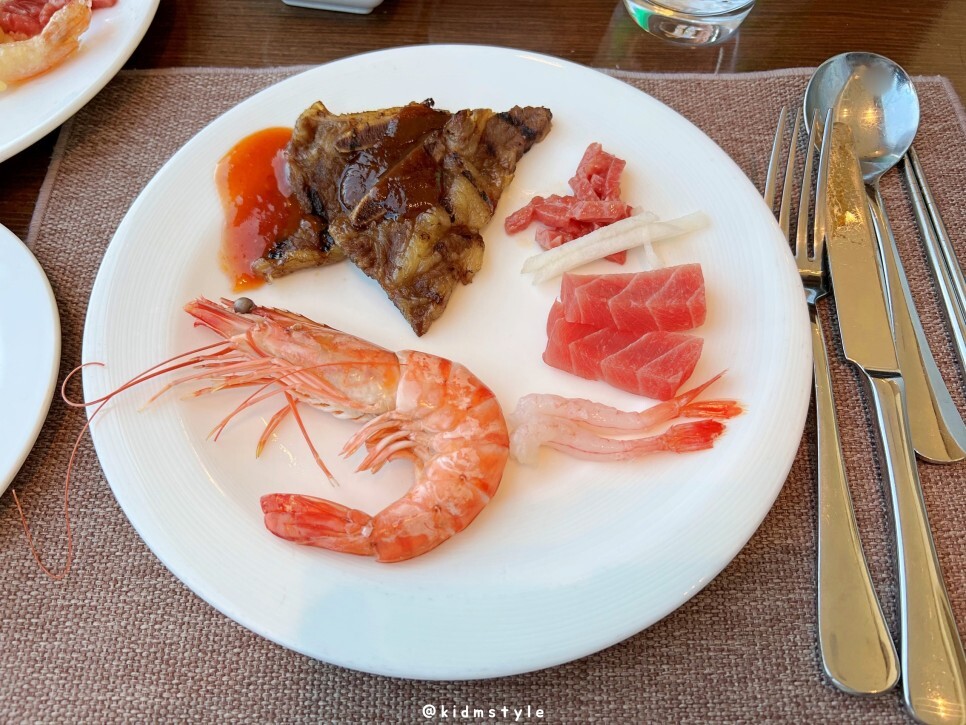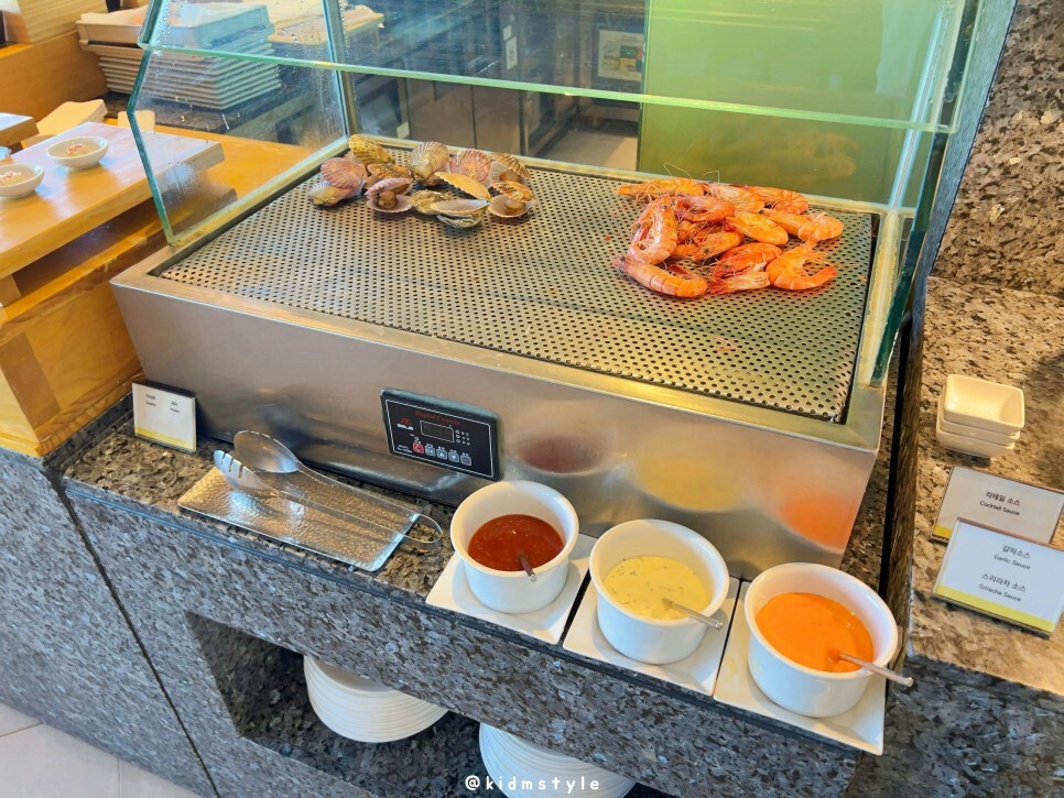 가리비와 새우도 많이 먹었습니다. 대게와 랍스터는 디너에 제공됩니다. 아쉽네요.
