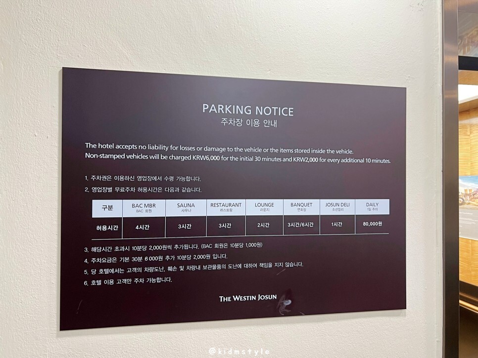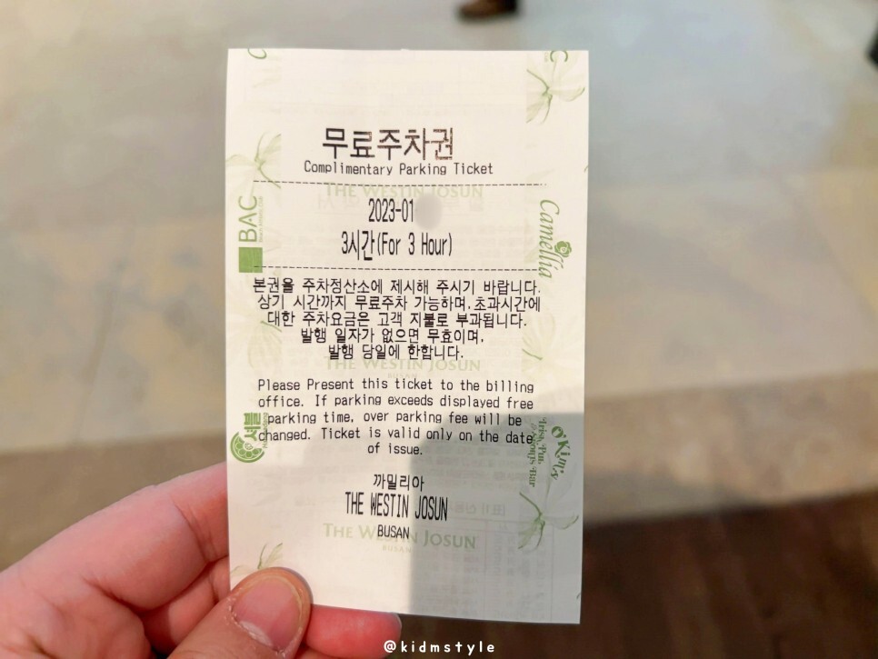 주차권은 이용한 영업장에서 받으면 되고요. 무료주차 시간이 넘어가면 10분에 2,000원씩 추가되니 참고하시기 바랍니다.