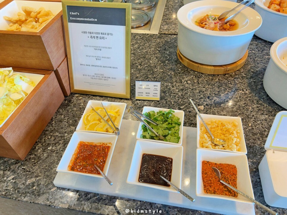 소갈비, 대게 등 다양한 메뉴가 후보였는데 뷔페는 좋은 선택이었습니다. 음식 맛도 전반적으로 괜찮았고 서비스도 좋고 풍경도 좋고 즐거운 가족 식사였습니다.