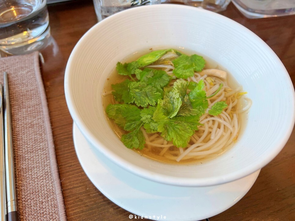 쌀국수에 고수를 올려서 가지고 왔어요. 국물이 시원하고 좋네요.