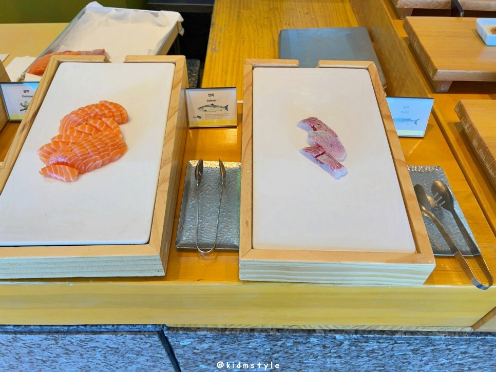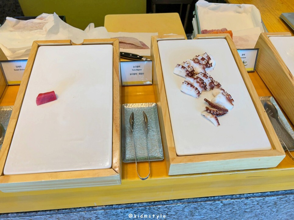 회도 있어요. 연어, 밀치, 눈다랑어, 문어 등이 보이네요.