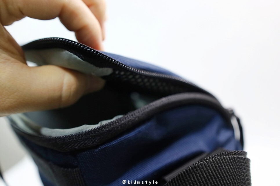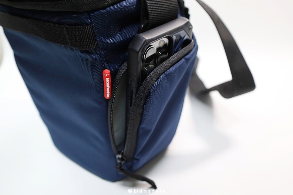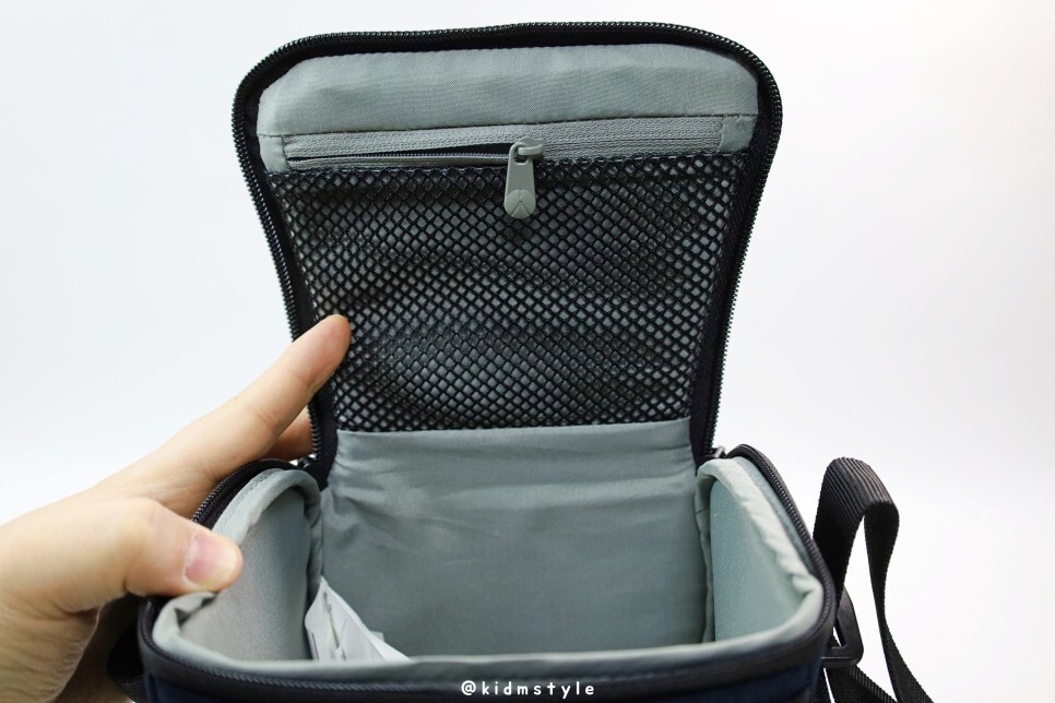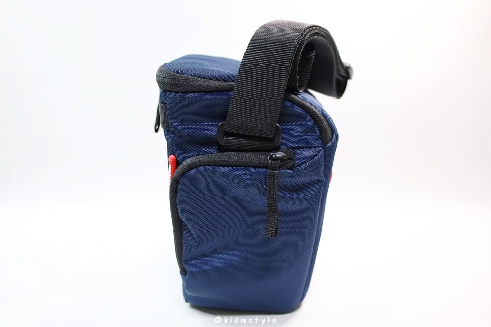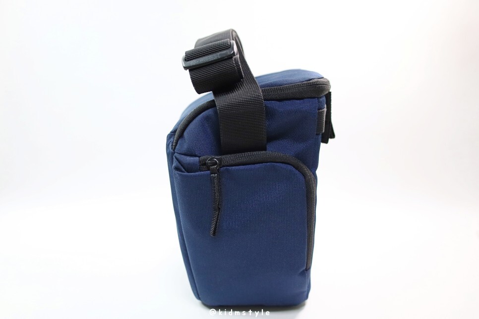옆모습입니다. 옆에 지퍼가 달린 포켓이 있는데요. 메모리 카드나 배터리 정도 수납이 가능하겠네요.