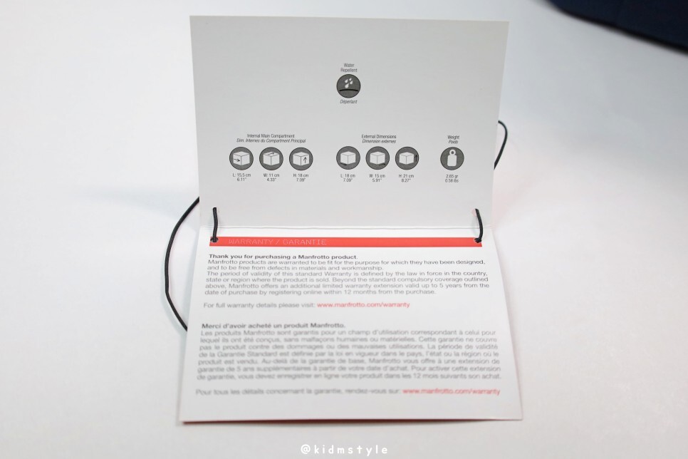 블루 색상이지만 실제로 보면 네이비 남색깔에 가까운 진한 색이라 괜찮네요. 빨간 맨프로토 로고가 눈에 들어옵니다. 20여 년 전 처음 삼각대를 구입했던 게 중고 맨프로토 삼각대라 저에게는 추억이 가득한 브랜드입니다. 삼각대로 꽤 유명하죠. 요즘은 다양한 브랜드와 경쟁하긴 하지만요.