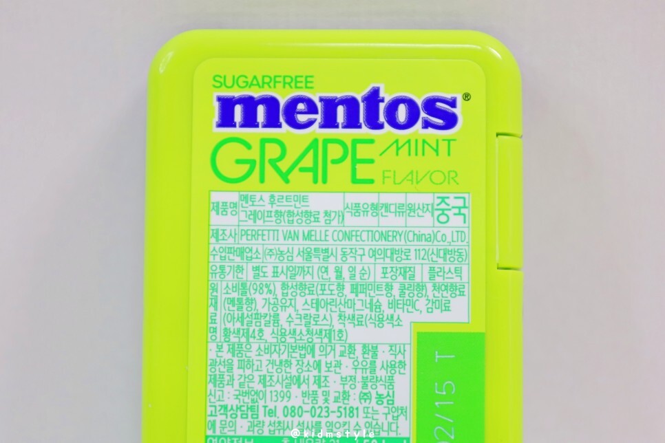 두 가지 중에 먼저 그레이프 grape 포도향 제품을 살펴볼게요. 사탕이 나오는 부분은 옆에 있습니다.