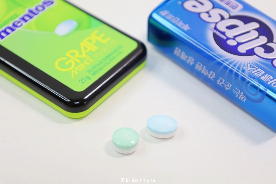기존에 자주 먹고 있는 이클립스 캔디와 상당히 닮았습니다. 이클립스는 타원형, 멘토스 후르트민트는 원형이네요.