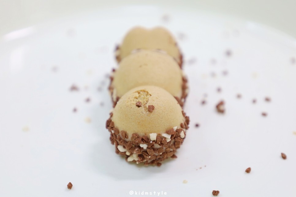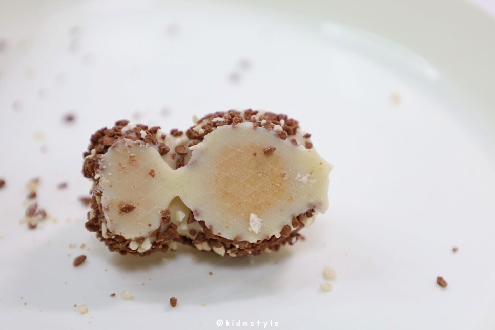 겉은 바삭한 과자, 속은 촉촉한 초콜릿과 화이트 초콜릿의 조합으로 겉바속촉의 표본입니다. 흡사 페레로 로쉐를 맛보는 느낌도 나네요.