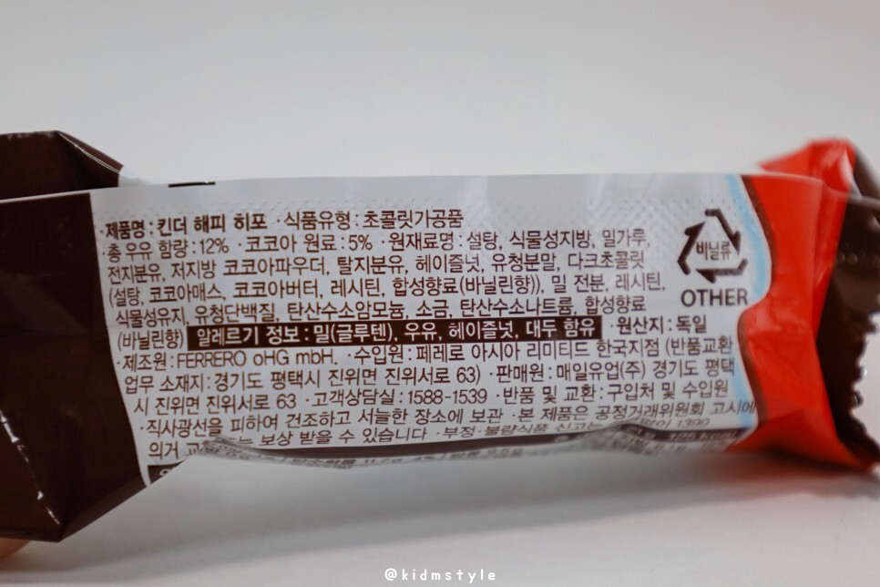 화이트 초콜릿 베이스이며 페레로 로쉐를 만드는 페레로에서 생산하였으며 원산지는 독일입니다. 국내 판매는 매일유업에서 하고 있네요.