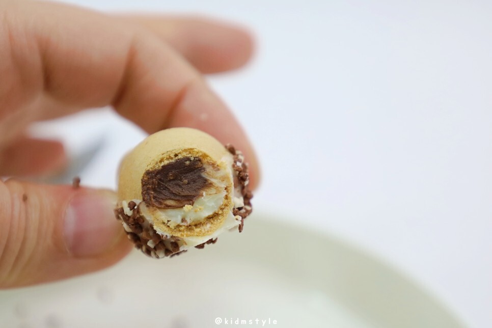 자세히 보면 화이트 초콜릿 위에 초코 가루가 발린 게 보이네요.